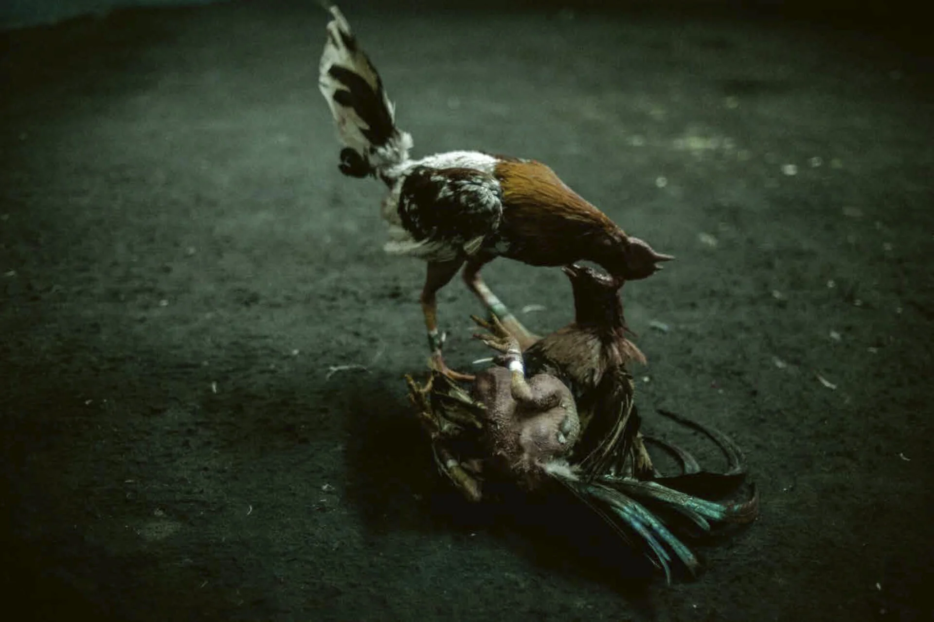 L'urgence de la vie, la fascination pour la mort, l'effondrement du pays. L'extrême violence et l'absurdité de la situation donnait l'impression que la vie n'était qu'un jeu. Je me rappelais deux jours plus tôt la gallina (arène pour combats de coqs). L'odeur du sang mélangée au rhum et la sueur, les cris de rage, l'excitation de chaque homme. Une transe impalpable enivrais l'arène. Comme si nous étions tous fous. Comme si le sang, la mort et le pouvoir rendaient plus vivants. L'énergie chaotique de la ville raisonnait dans chaque combat telle une danse qui se déploie, qui reste et pleure impuissante. Un mois plus tard, Yair fut abattu. Il avait 27 ans. Mes errances en Amérique Latine furent traversées par d'autres rencontres saisissantes. Comme ces coqs de combats, je voyais des êtres danser et s'accrocher au désordre. J'y retrouvais à chaque fois cette même sensua- lité insolente, comme une furieuse provocation, comme un cri d'adolescent amusé par le danger, condamné et libre.